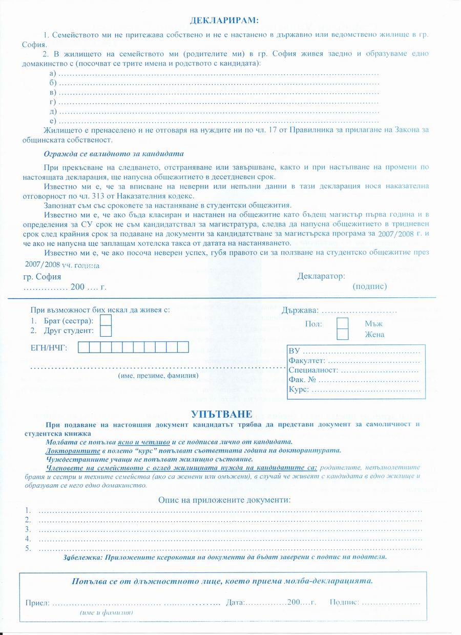 ами мисля, че като се записваш вече за някоя специалност, тогава пускаш и декларация за общежитие...