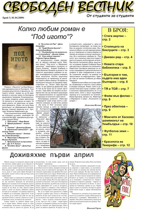 Коментар на файл: Свободен вестник брой 3/2009, страница 1
